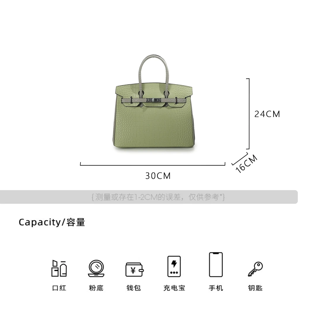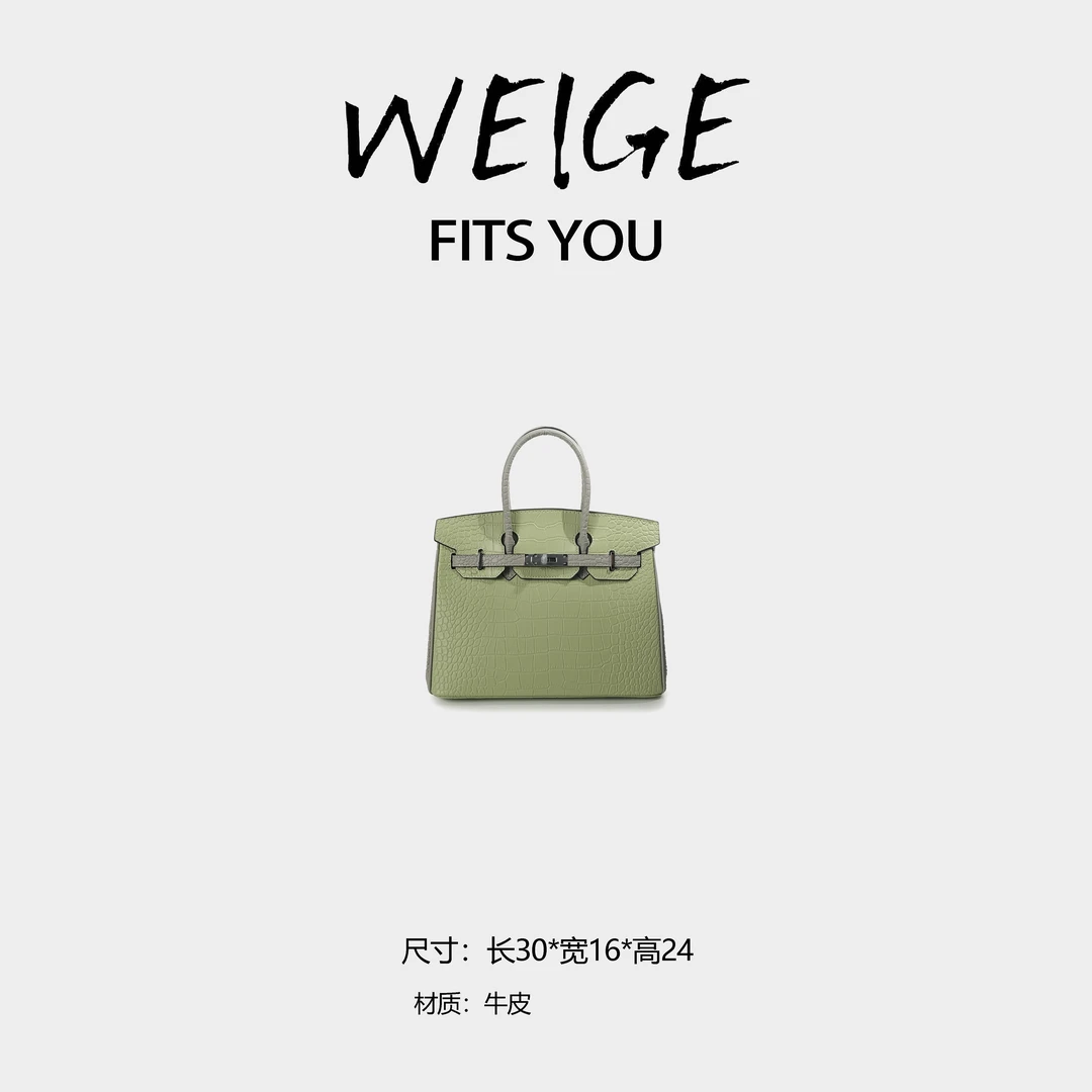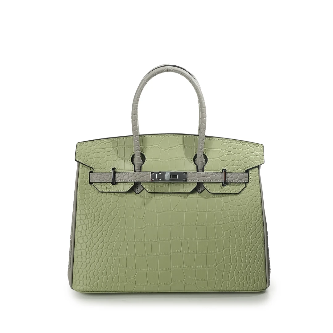WEIGE【BK30】Cowhide & Crocodile-Embossed Leather Tote, Shoulder & Crossbody Bag BV72630 – Bubble Green & Puppet Grey B55