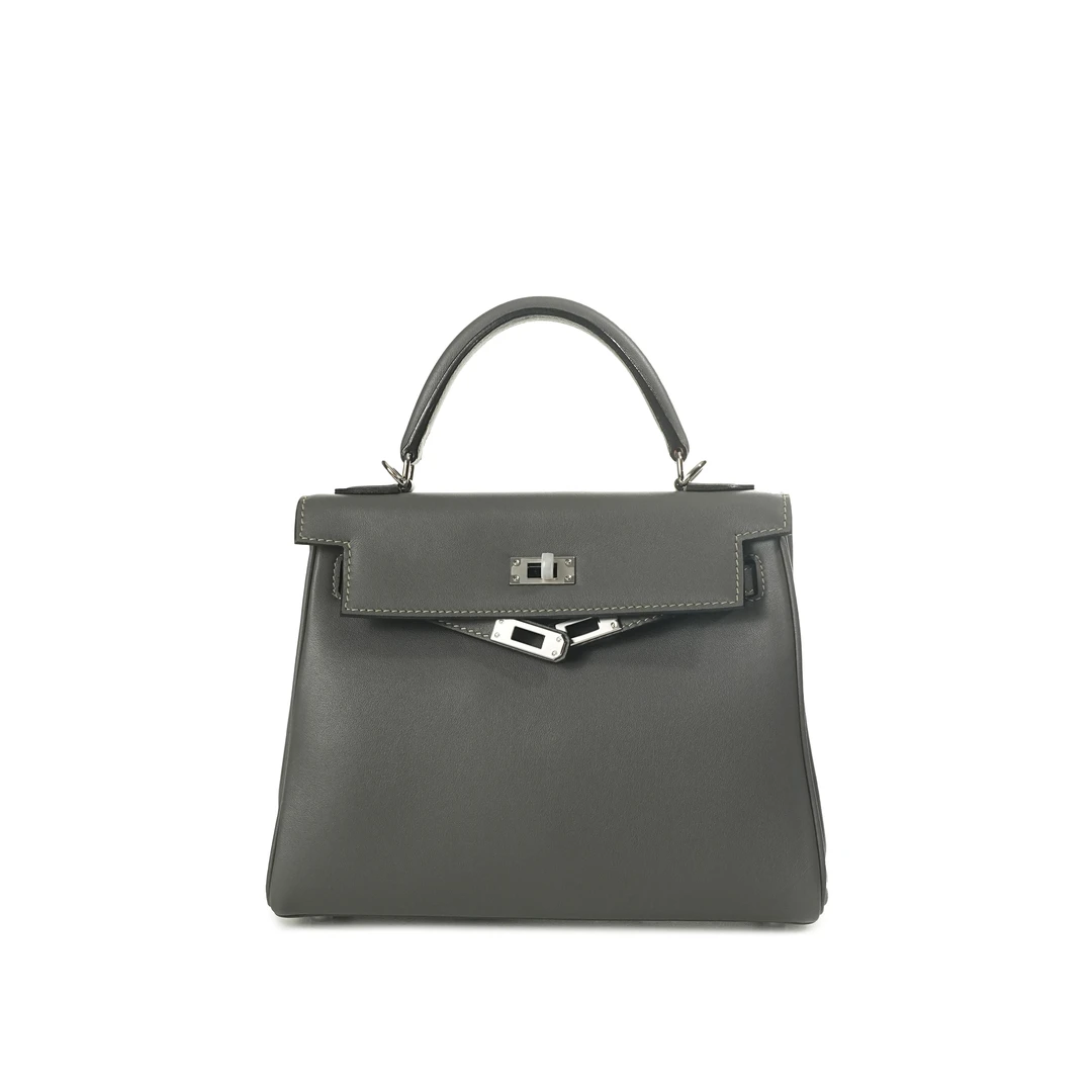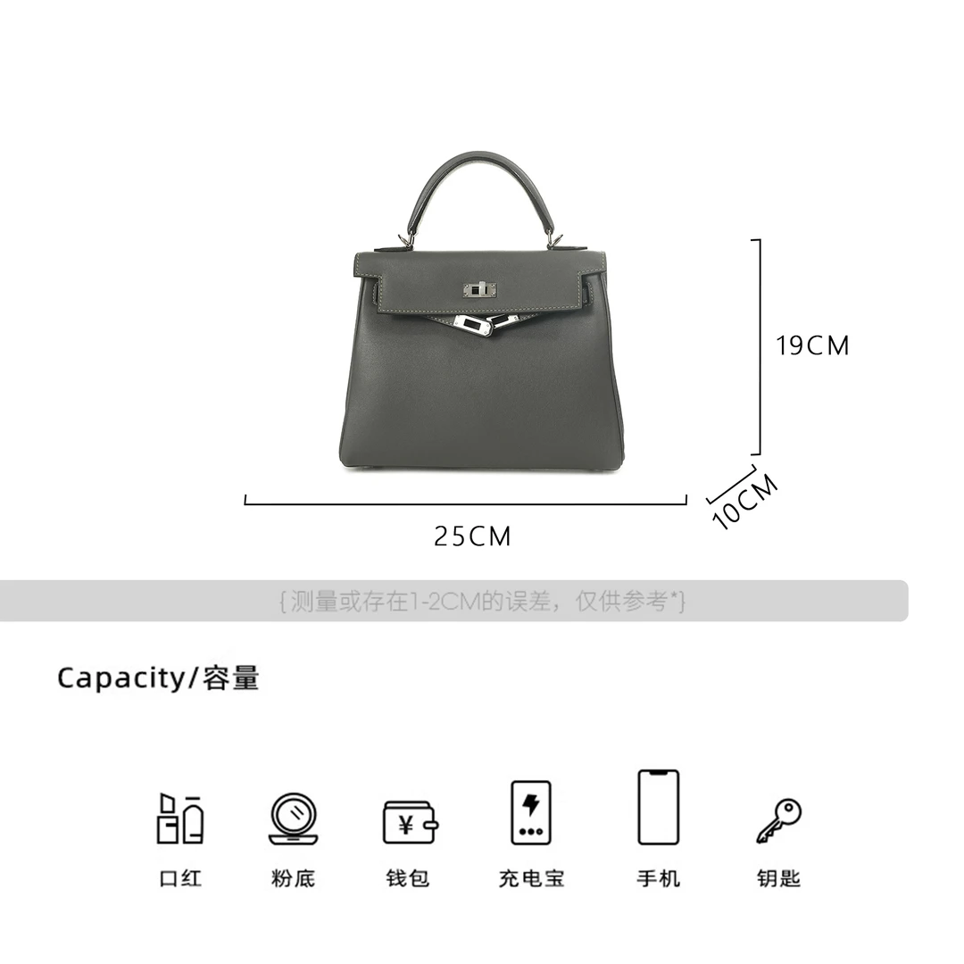 WEIGE【K25】Swift Leather Tote, Shoulder & Crossbody Bag BV1261 – Graphite Grey with Silver Hardware B34