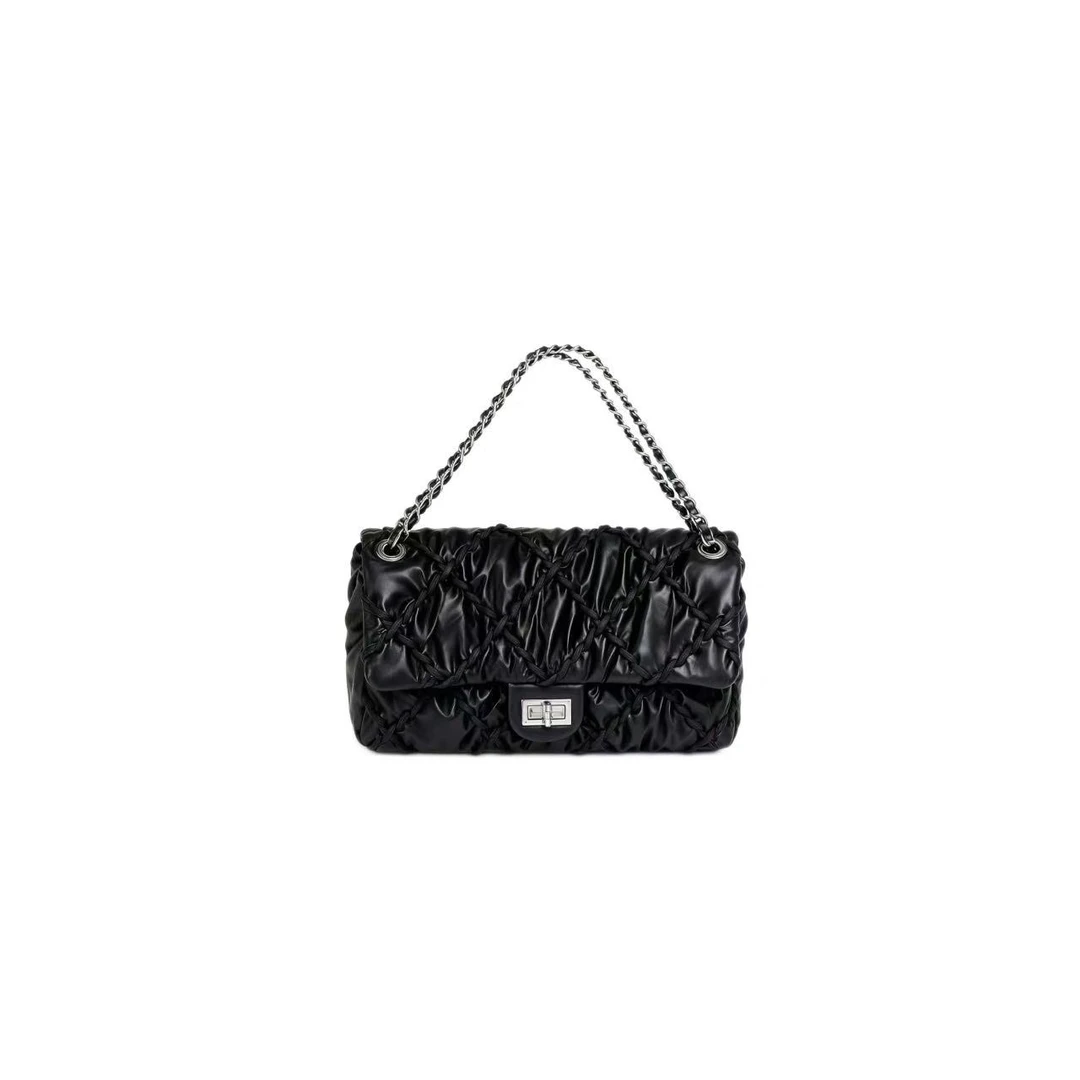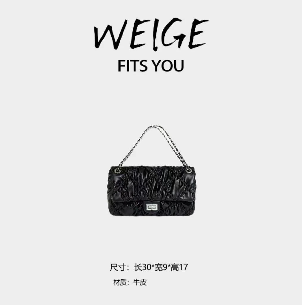 WEIGE “Chain Bag” Cowhide Shoulder & Underarm Crossbody Bag BV9985 – Silver Hardware – Black B08