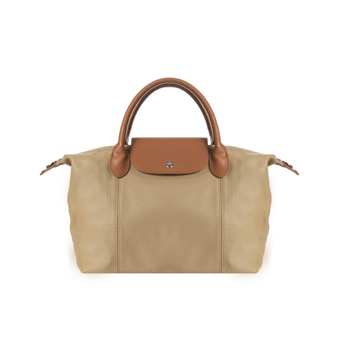 WEIGE [Dumpling Bag] Toscana Lambskin Top Handle Shoulder Crossbody Bag BV250203 – Almond