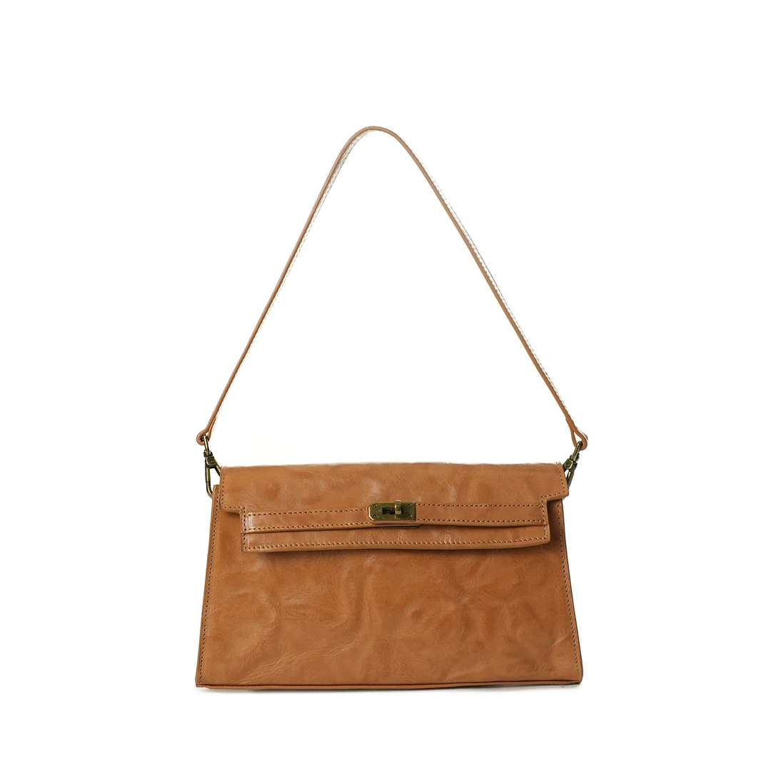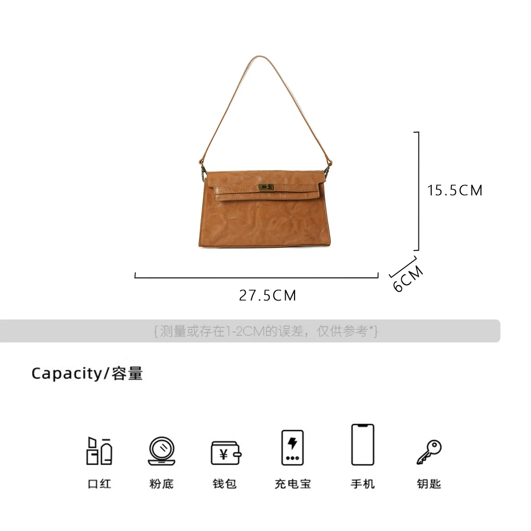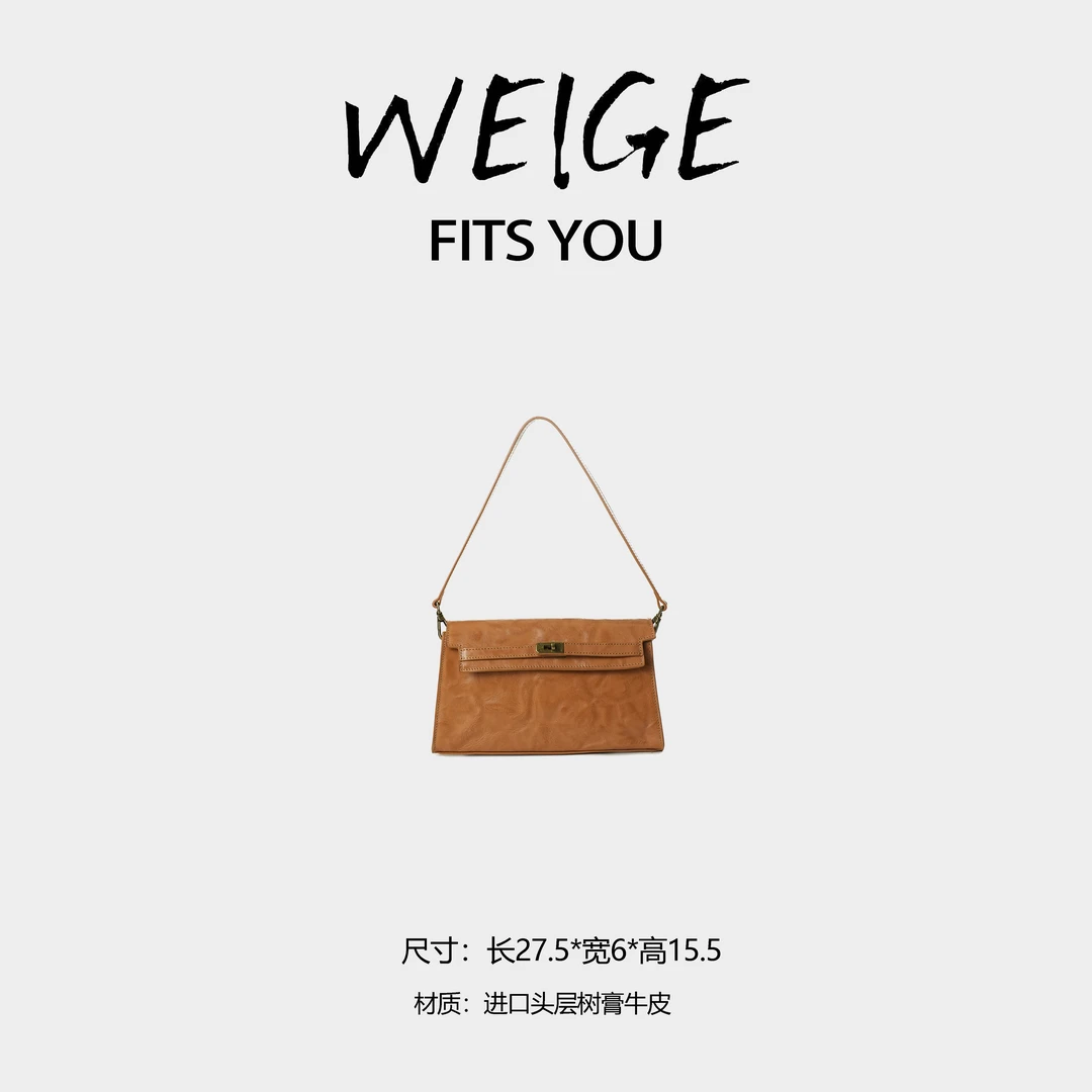 WEIGE [KL 1st Gen] Imported First-Layer Waxed Calfskin Shoulder Crossbody Bag V6779 – Chestnut Brown