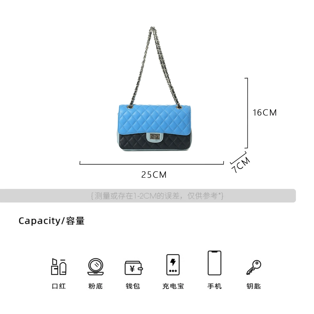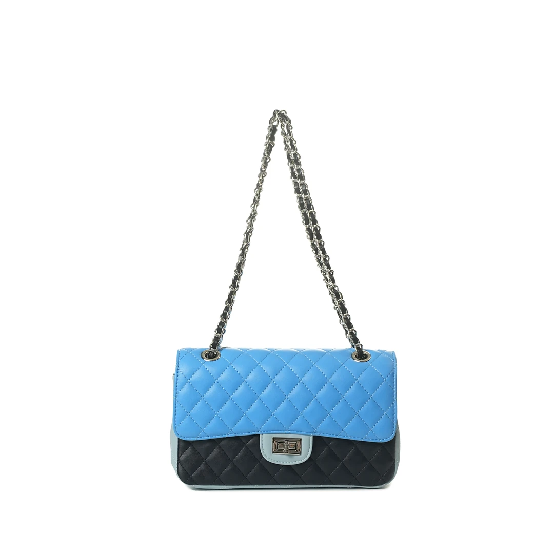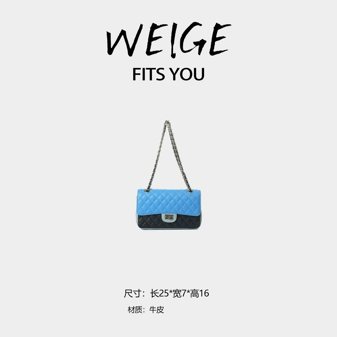 WElGE [Chain Bag] Calfskin ShoulderUnderarm Crossbody Bag BV24072 -Klein Blue & Baby Blue