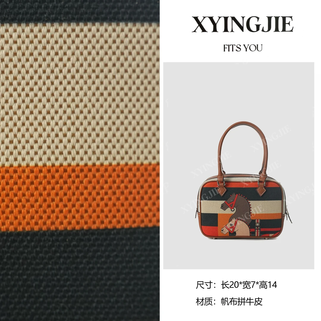 XYINGJIE · Original Design Premium Genuine Leather Small Top Handle Shoulder Bag BV200814 – Horse Totem Pattern-A-65
